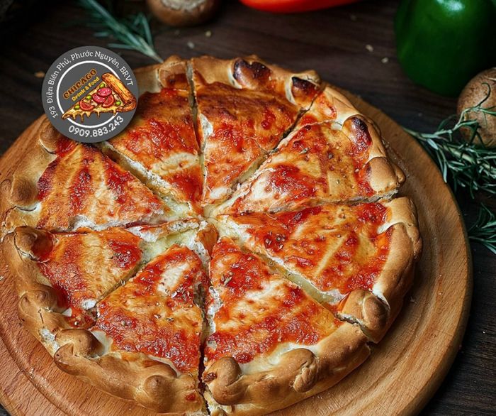 Bánh khi đem ra nóng hổi, lớp bột vừa phải nên vẫn có độ giòn cũng như không bị khô. Nguyên liệu hoà quyện làm thực khách chẳng nỡ quay lưng với hương vị quyến rũ của những chiếc Pizza tại đây. Khi thưởng thức, bạn sẽ cảm nhận rõ mỗi chiếc bánh Pizza ở quán Pizza Chicago đã được nhào nặn thủ công và ủ tươi theo bí quyết riêng. Vỏ bánh không quá cứng, nhân đầy đặn, đặc biệt nhất là khi kết hợp cùng phô mai. Tuyệt vời nhất chính là phần viền phô mai đầy đặn, chín đều không bị cứng, khi ăn bạn còn có thể kéo dài phô mai trông vô cùng thú vị.