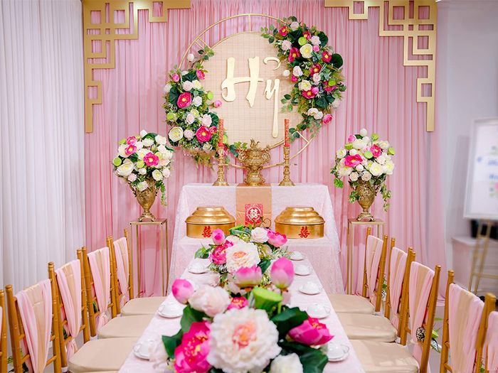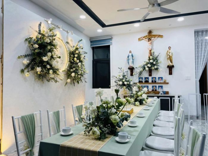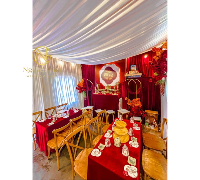 Nguyễn Gia Wedding hỗ trợ chuẩn bị mọi vật dụng lễ nghi như chữ hỷ, cặp lư đồng, câu đối, bát hương, mâm ngũ quả và đèn cầy long phụng điểm nhấn với hoa tươi tắn. Với giá cả cạnh tranh, địa chỉ này cam kết đảm bảo giá phải chăng cho dịch vụ trang trí bàn thờ gia tiên.
