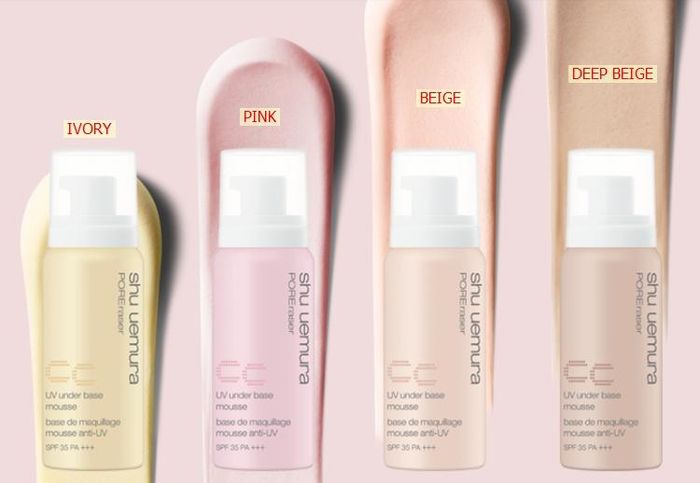 - Shu Uemura Poreraser CC UV Under Base Mousse SPF35 có 4 công dụng trong 1 sản phẩm: che phủ lỗ chân lông, cung cấp ẩm, kiềm dầu, chống nắng.