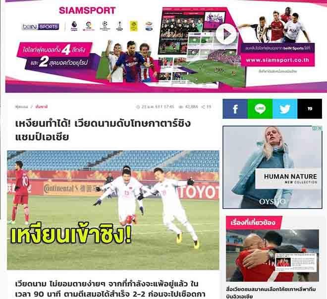 Thành công lịch sử của U23 Việt Nam khiến U23 Thái Lan phải ghen tị, và báo chí Thái Lan không giấu được sự ngưỡng mộ. Tờ Siam Sport của Thái Lan đưa tin với hình ảnh 'bay bổng' của Quang Hải và tiêu đề: 'Nguyễn có thể làm được! U23 Việt Nam vượt qua Qatar vào chung kết'. Bài báo đánh giá cao màn trình diễn chói sáng của 'siêu sao' Quang Hải, đưa U23 Việt Nam trở thành đội bóng đầu tiên thuộc ASEAN vào chung kết U23 châu Á. Siam Sport cũng tường thuật về niềm vui và hạnh phúc tột cùng của NHM Việt Nam, tạo ấn tượng mạnh mẽ cho độc giả Thái Lan.