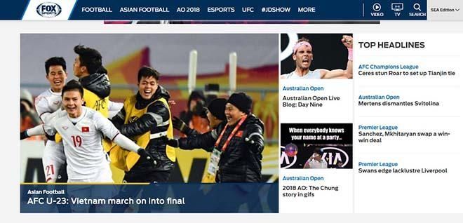 Fox Sports đưa tin về chiến thắng lịch sử của U23 Việt Nam