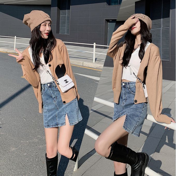 5. Kết hợp độc đáo: Cardigan và chân váy jeans ngắn