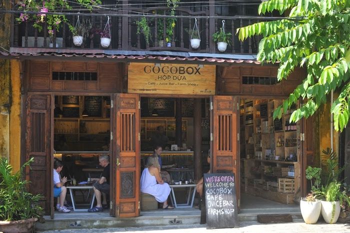 Cocobox mang phong cách hiện đại, kết hợp quán cà phê và cửa hàng bán nông sản - một xu hướng phổ biến ở châu Âu. Tại Cocobox, bạn có thể thưởng thức bữa sáng kiểu Tây, thử các loại sinh tố độc đáo và mua những sản phẩm chất lượng cao như cà phê, mật ong, trà, dầu dừa... Quán còn có đa dạng loại sinh tố từ trái cây, rau quả tươi ngon như Good Morning HoiAn, Relax Thu Bon, An Bang Colada... để làm hài lòng thực khách.