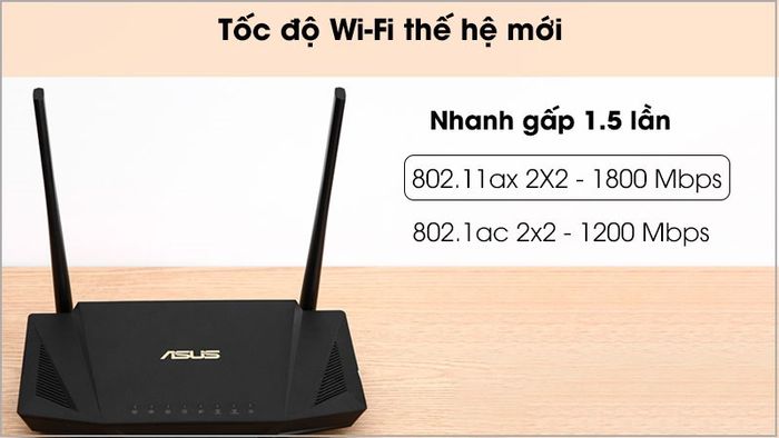 Asus AX56U tăng tốc độ kết nối không dây với hỗ trợ băng tần kép hiện đại, mang đến băng thông rộng rãi, wifi siêu nhanh với tổng tốc độ mạng lên đến 1800 Mbps. Phù hợp ở những môi trường rộng với kết nối tối đa đến 40 thiết bị.