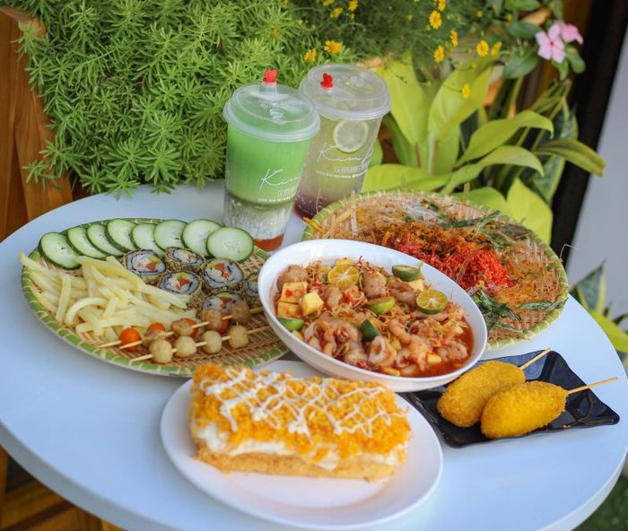 If you are a snack lover, you can't miss Kim Lee Kitchen & Milk Tea. This place is considered a "snack heaven" in Pleiku city, Gia Lai with a menu full of delicious options. The shop's design is vibrant and cute, making it a perfect spot for those who love taking photos. You'll definitely get some great photos here.