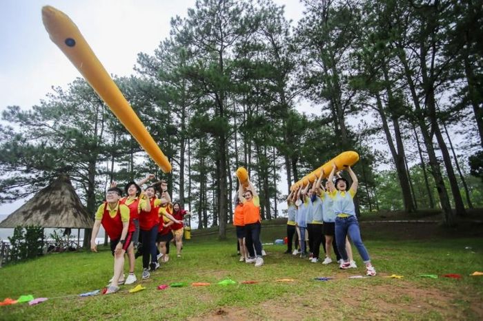 Alongside other popular spots, Cu Lan Village stands out as an exciting destination in the dreamy city of Da Lat, perfect for team activities and large group games. The village offers a vast 13,000 m2 grassy field where teams can enjoy various fun games. Visitors to Cu Lan Village can organize a variety of team-building exercises to foster stronger bonds. Popular activities include canoeing, duck-catching, and fishing in the stream within the area.