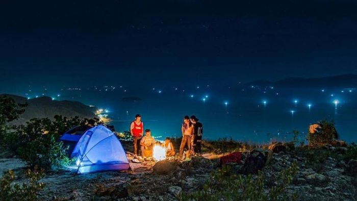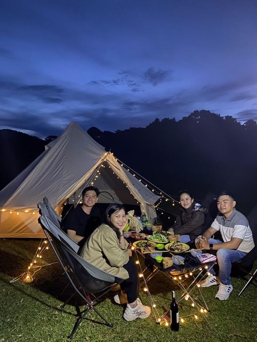 Thien Phu Duc Hill is still relatively undeveloped, so you won't find restaurants or eateries here. Visitors are advised to bring their own food for a picnic after engaging in outdoor activities. For teams wanting to stay overnight, you can camp here, as the hilltop is clear, offering only green grass and a few scattered pine trees, making it a perfect spot to enjoy the fresh air, with the city not too far away.