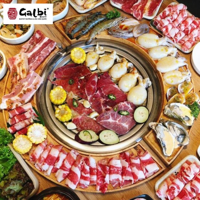 All these delicacies are part of an exceptional Korean BBQ and hot pot buffet experience at Galbi House, where you can indulge to your heart's content. Don't miss out on the restaurant's ongoing promotion offering a 100k voucher, with buffet prices starting at just 199k per person. If it's your first time visiting, be prepared for a lively atmosphere, as customers flock in at any hour to enjoy the buffet. Upon entering the main dining area, you'll be pleasantly surprised by the buffet line, constantly stocked with popular Korean dishes such as tokpokki, fried sausages, mandoo, and soy-marinated eggs.