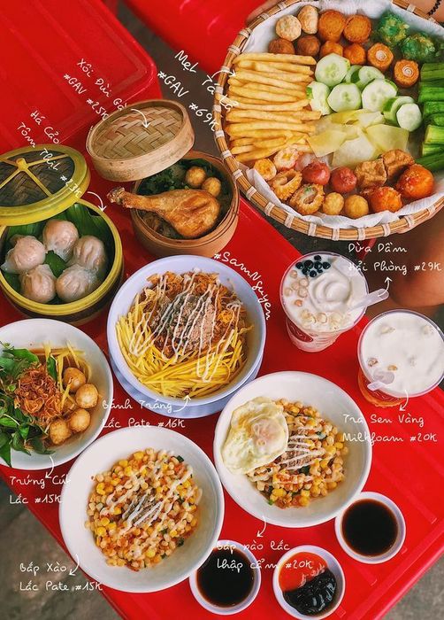 Snack Corner is a favorite hangout for young people to meet up with friends and chat. Located in District 12, it is known for its wide variety of food, cleanliness, and affordable prices. The menu includes many flavors of sweet treats like jelly, yogurt, caramel, fresh juices, lemonade, and smoothies, all prepared by skilled and experienced staff. For savory options, you can try fried spring rolls, crispy fries, spiced chicken, sausages, chicken jerky with lime leaves, cheese sticks, and more – all of which are worth trying when you visit Snack Corner.