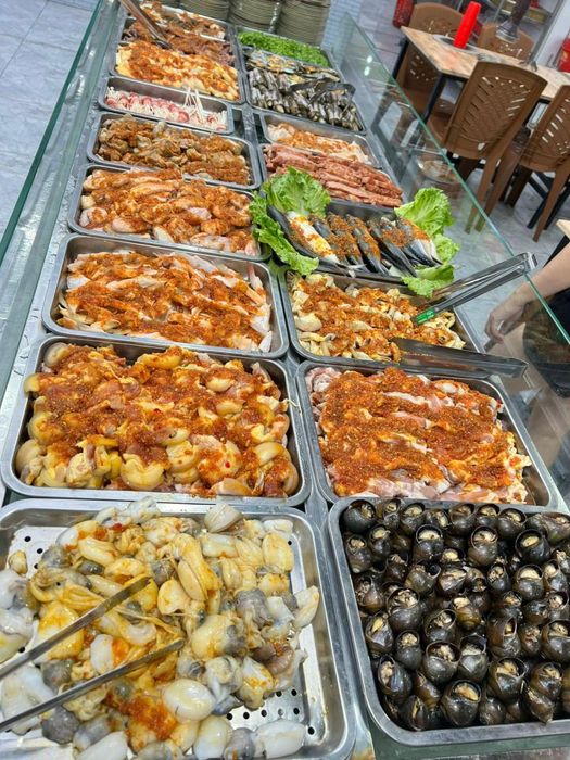 Upon entering Oc Nho Sai Gon, you'll be amazed by the selection of colorful snails on display, waiting for you to choose your favorites. The extensive menu can leave you wondering what to pick, as every dish is mouth-watering and beautifully presented. The restaurant is particularly famous for its golden, sizzling garlic butter sauce served with aromatic snails, which is a favorite among young diners. Some other popular options include snails sautéed in garlic butter, stir-fried clams with water spinach, pineapples with snails, grilled scallops with spring onion oil, and cheesy scallops.