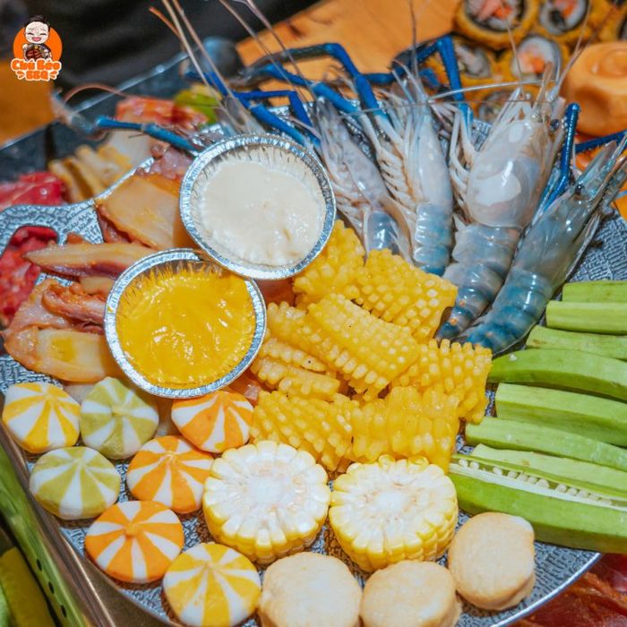 The sweet and tangy peach tea will quench your thirst, making it the perfect drink to complement over 40 dishes from the meat and seafood selection. Try the Green Shrimp and Beef Skewers, dipping them into any of the six different sauces Chú Béo BBQ offers, and you're sure to exclaim, 'Delicious!' For just 139K, you can enjoy a top-tier buffet with grilled meats, seafood, and vegetables. The line-up includes premium beef, pork belly rolls, seafood such as squid and octopus, and even tofu with cheese and salted egg sauce, all available to refill as much as you want.