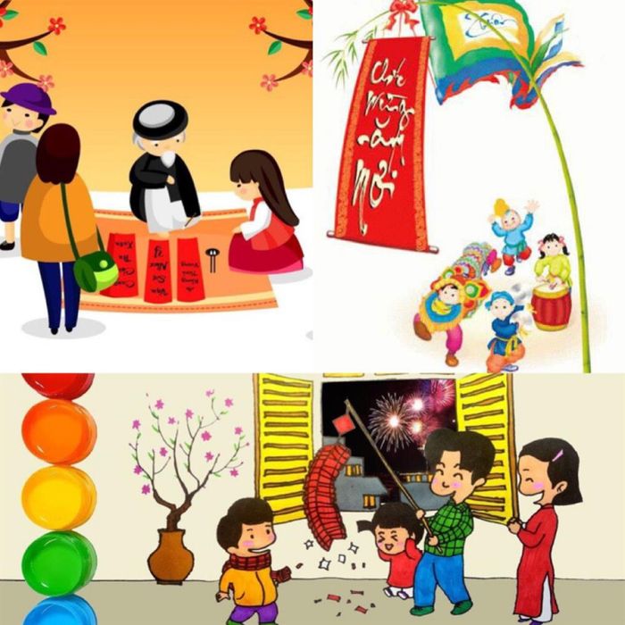 Mỗi khi Xuân về, chúng em háo hức đón chờ từng ngày. Có người thích Tết vì áo mới may. Người khác thích vì ẩm thực ngon và nhận lì xì. Cũng có người nói, 'Cháu thích Tết vì được thêm một tuổi'. Riêng em, em yêu không khí Tết. Trẻ con nào cũng hạnh phúc với Tết, không hiểu tại sao người lớn lại sợ Tết.