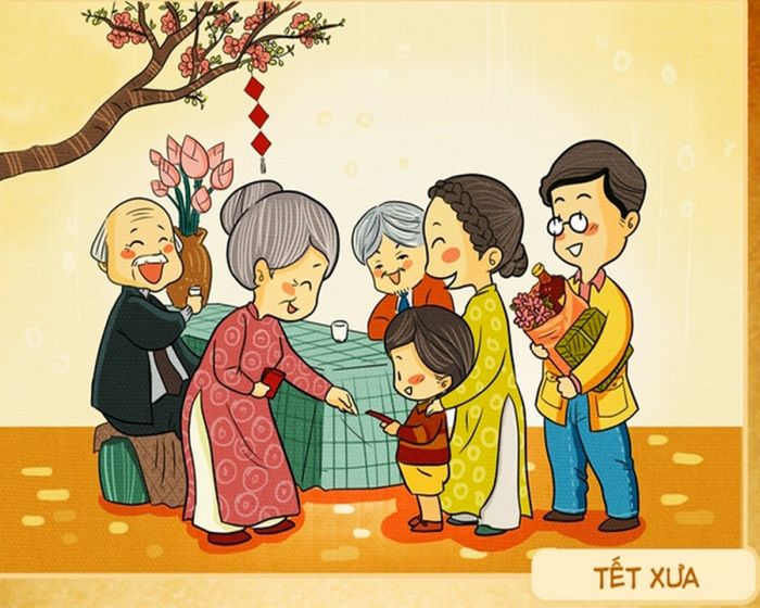 – Chú còn nhỏ quá, chưa trải qua Tết nào mà biết! Tết là ngày đầu năm mới, chú hiểu chưa? Mọi người mặc đẹp để đi chơi, gia đình nào cũng làm bánh chưng, cái giò, hầm chè, trang trí cây nêu để chào mừng năm mới. Tết vui lắm đấy, chú sắp biết rồi vài ngày nữa.