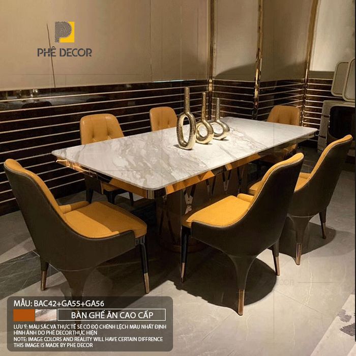 - Bộ bàn ghế phòng ăn nhập khẩu GDA903 (BÀN DÀI+ 6 GHẾ): 85.050.000 đồng.
