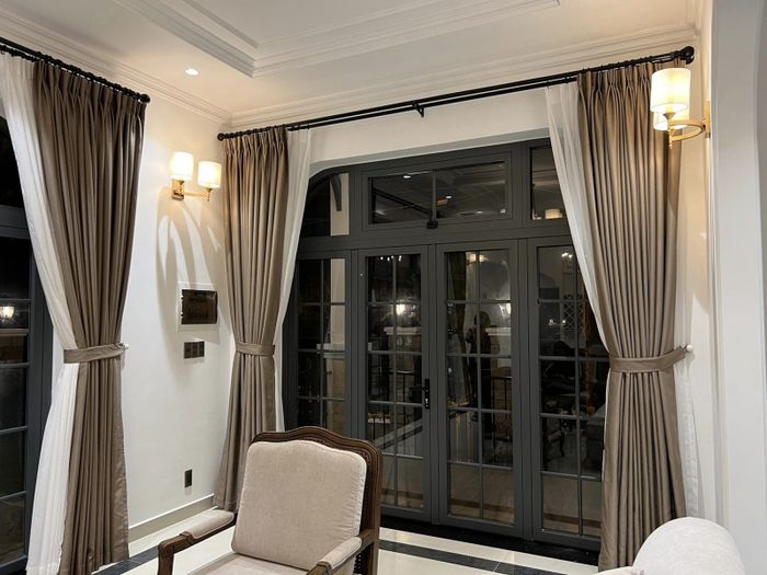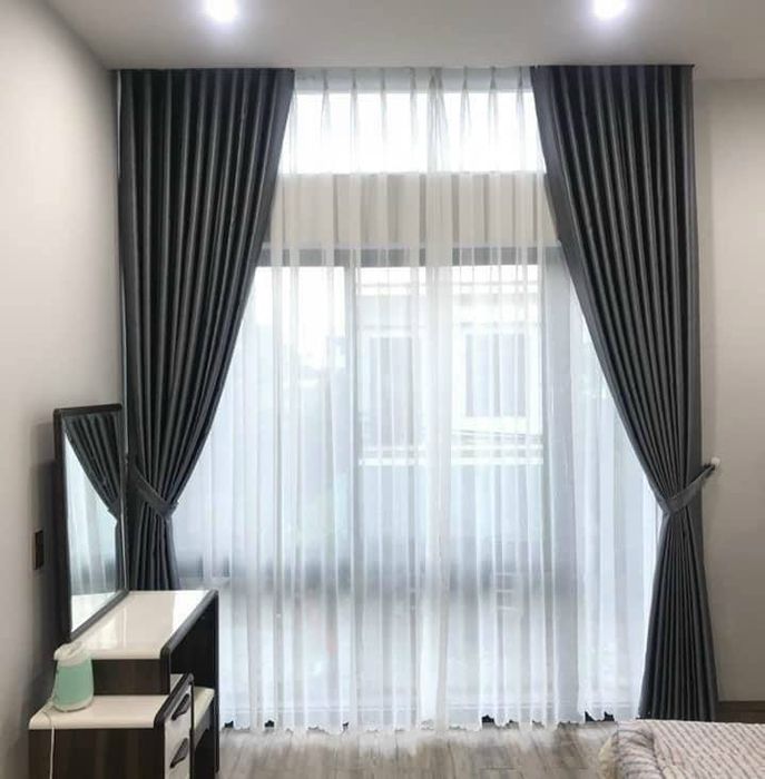 - Rèm cửa 2 lớp từ chất liệu cao cấp, kết hợp với lớp voan mỏng nhẹ giúp chắn nắng, cản sáng hiệu quả