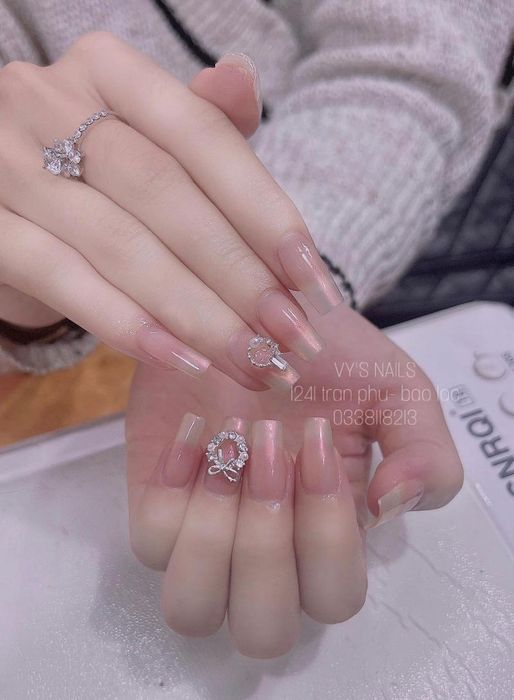 Với kỹ thuật đính đá tinh xảo, đắp bột vẽ móng tinh tế, Nail Vy Vy luôn khiến khách hàng bất ngờ. Mỗi mẫu nail đều được thiết kế đảm bảo 'xinh lung linh', điều mà Nail Vy Vy luôn nỗ lực để đạt được, mang lại sự hài lòng tuyệt đối cho mọi khách hàng, kể cả những người khó tính nhất. Đặc biệt, Nail Vy Vy còn có bộ sưu tập nail độc đáo với họa tiết hoa lá, động vật dễ thương, màu sắc sặc sỡ và tinh tế.
