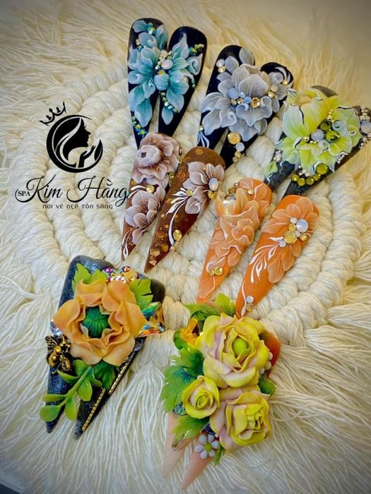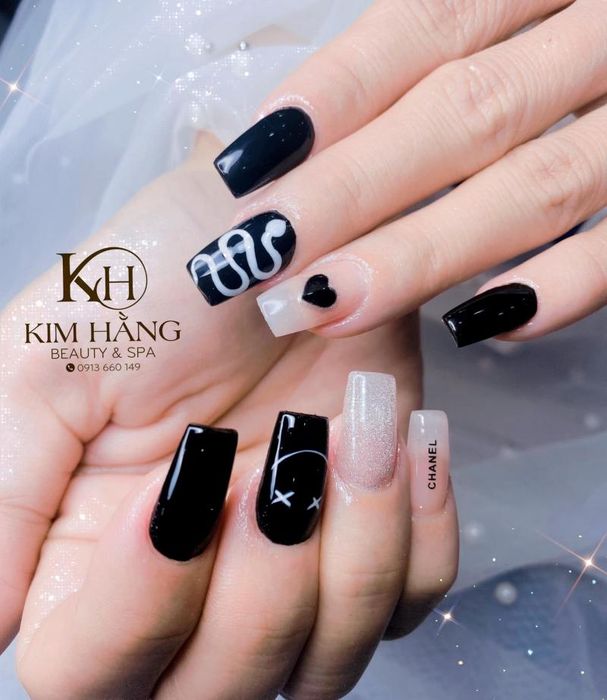 Tại Nail Kim Hằng, điểm mạnh nằm ở trang trí móng sang trọng với nghệ thuật đính đá, pha lê cực kỳ công phu. Các mẫu nail đơn sắc cũng là sự lựa chọn tuyệt vời cho các quý cô sành điệu.