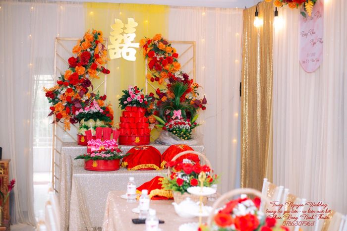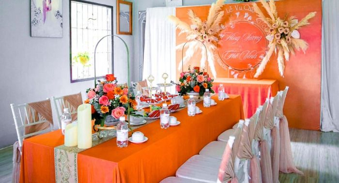 Một trong những xu hướng màu sắc đang thu hút sự chú ý trong tiệc cưới là tone cam và vàng đồng. Tuy nhiên, màu đỏ vẫn được ưa chuộng bởi vẻ truyền thống, ấm cúng và rực rỡ. Bàn gia tiên với tone đỏ tại Thành Công Wedding Planner Phan Rang - Ninh Thuận không chỉ trở nên trịnh trọng mà còn đậm chất văn hóa. Với sự sáng tạo và linh hoạt, chúng tôi đảm bảo mang đến cho bạn không gian cưới hỏi độc đáo, sang trọng, phản ánh đẳng cấp và đẳng cấp.