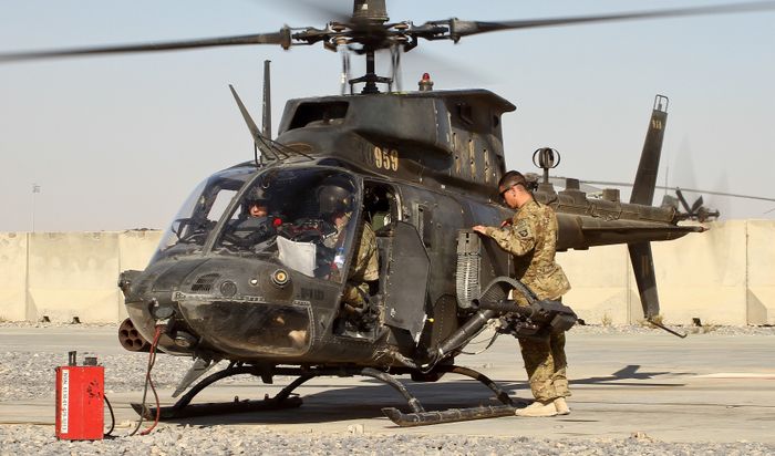 Một chiếc OH-58D đang đậu tại Sân bay Kandahar, phía đông nam Afghanistan vào năm 2011. Ảnh: Wikipedia.