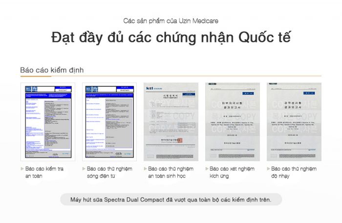 - Máy đạt chứng chỉ chất lượng Y tế Châu Âu (CE) và FDA Mỹ về an toàn thực phẩm và sức khỏe cộng đồng.
