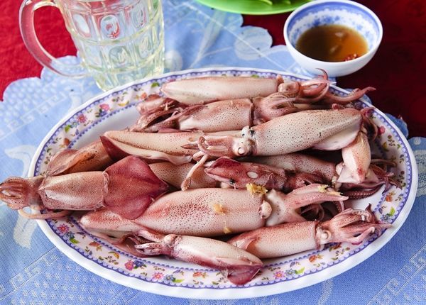 Vung Ang Squid is known for its large size and distinctive taste. Caught fresh and cooked immediately, it's served in various styles like boiling, steaming, or stir-frying, enhancing its freshness.