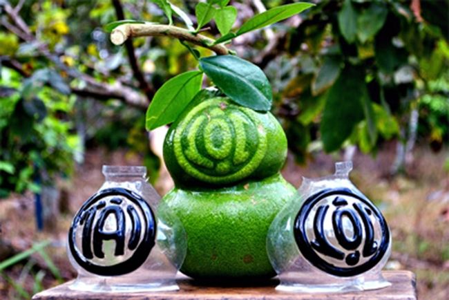 Bưởi không chỉ là trái cây trang trí phổ biến trên mâm ngũ quả Tết mà còn là nguồn cảm hứng cho nghệ nhân tạo hình. Bưởi hồ lô thư pháp, một sự kết hợp tinh tế giữa hình dạng độc đáo và nghệ thuật chữ thư pháp, mang lại vẻ đẹp sang trọng và lạ mắt. Những quả bưởi này được tạo hình với chữ thư pháp tinh tế, làm nổi bật vẻ đẹp và ý nghĩa của mâm ngũ quả Tết.