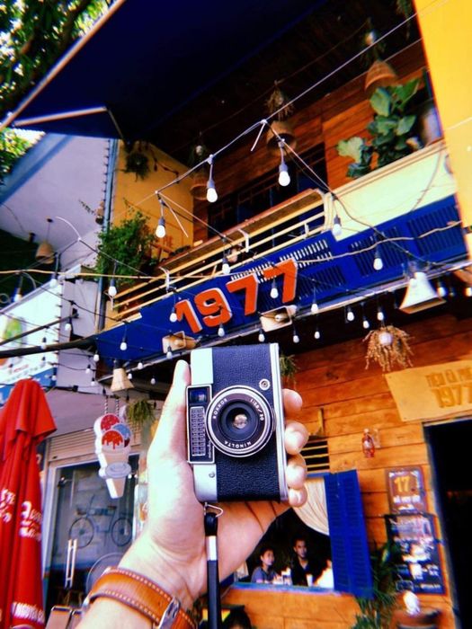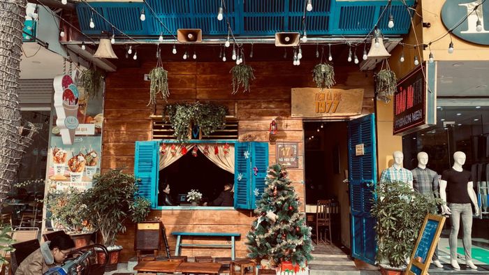 Gần quán Cà Phê Việt là Quán Cà Phê 1977. Mặc dù mặt tiền của tiệm hơi nhỏ so với Cà Phê Việt, nhưng không vì thế mà kém phần ấn tượng. Quán được trang trí theo phong cách cổ điển với những cửa sổ màu xanh, tường bằng gỗ thông, bàn ghế gỗ thô mộc kiểu cũ. Bên trong, ánh sáng màu vàng tạo nên không khí như những ngày xưa. Quán chủ yếu đón khách ở 2 tầng: tầng trệt và tầng 2. Tầng 2 là không gian lý tưởng cho các cặp đôi tận hưởng không gian riêng tư, nhìn xuống đường phố tấp nập dưới tán lá bàng.
