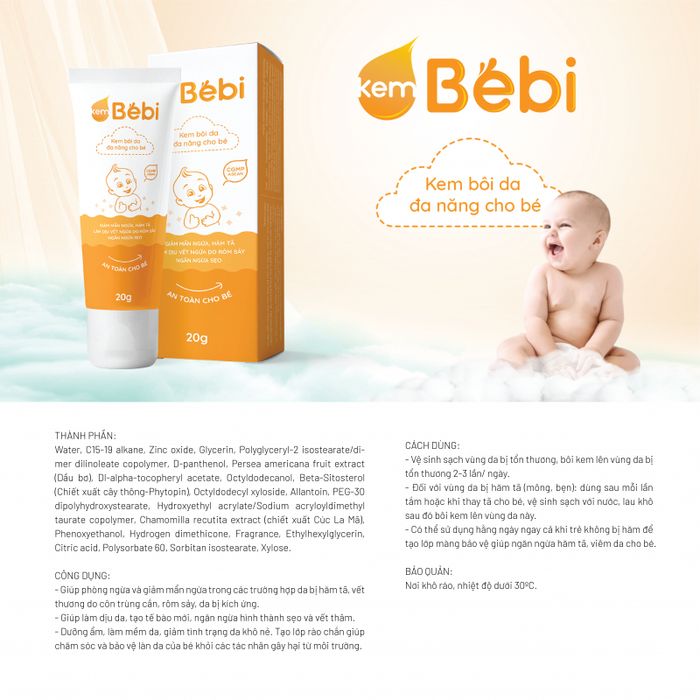 Khám Phá Ngay: Kem Đa Năng Cho Bé - KemBebi với sự kết hợp độc đáo của Phytopin (chiết xuất cây thông) và nhiều thành phần tự nhiên khác, giúp giảm hăm, đau, mẩn, ngứa ở trẻ một cách toàn diện. Hạn chế thâm sẹo hiệu quả, đảm bảo lành tính với da bé. Sản phẩm từ thiên nhiên, không chứa corticoid. Đạt chuẩn của Cục An Toàn Thực Phẩm - Bộ Y Tế Việt Nam.