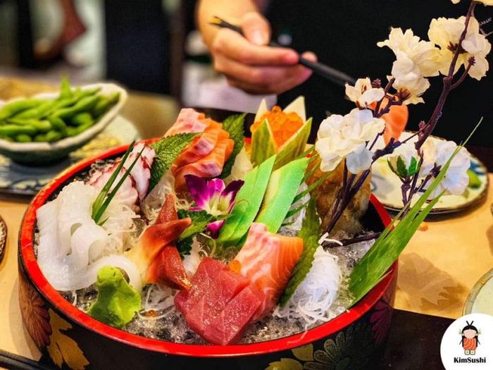 KimSushi at Times City is a well-loved seafood destination. This restaurant offers a wide selection of fresh seafood, prepared by chefs with years of experience studying in Japan, using their own special recipes.
