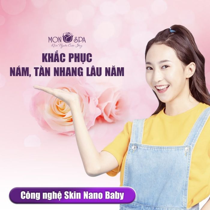 Spa sử dụng công nghệ Skin Nano Baby trong gói điều trị nám, giúp làn da trắng sáng và trẻ trung. Mon Spa không ngừng cải tiến kỹ thuật, sử dụng sản phẩm chăm sóc cao cấp, luôn cập nhật công nghệ tiên tiến để mang đến hiệu quả điều trị tốt nhất mà không làm tổn thương da.