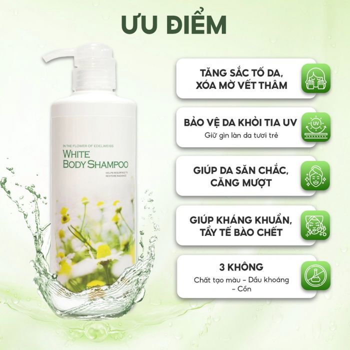 Hướng dẫn sử dụng: Áp dụng tẩy tế bào chết định kỳ, sau đó thoa sữa tắm và massage nhẹ nhàng. Sử dụng sản phẩm 2 lần mỗi ngày để đạt hiệu quả tốt nhất.