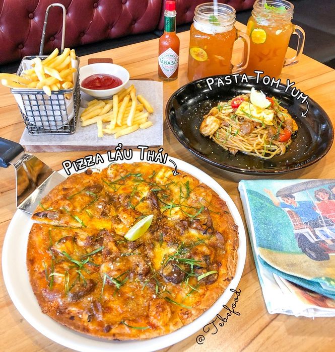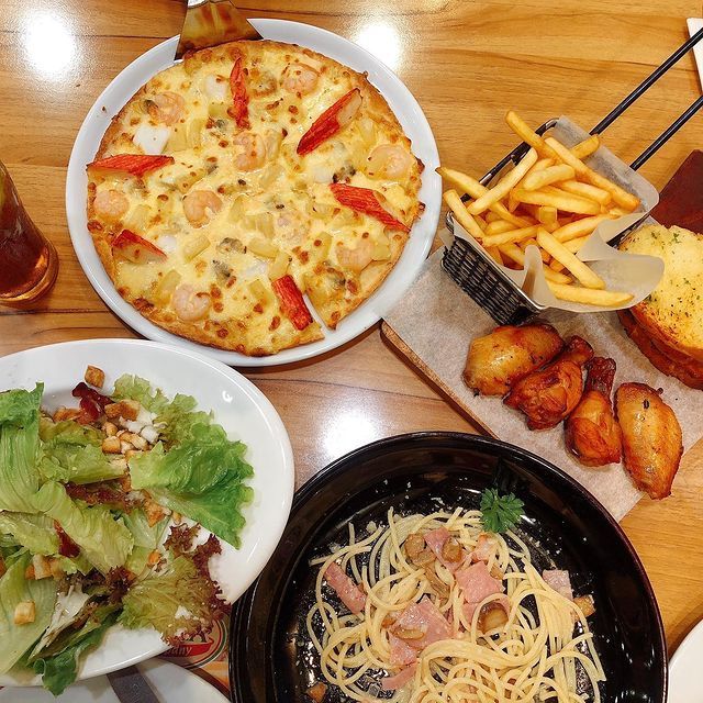 Ngoài pizza, bạn có thể thưởng thức nhiều món ngon khác tại nhà hàng như mì cua nức tiếng, salad, khoai tây Đức bỏ lò, bò hầm với khoai tây nghiền, các món soup,... cực kỳ hấp dẫn.