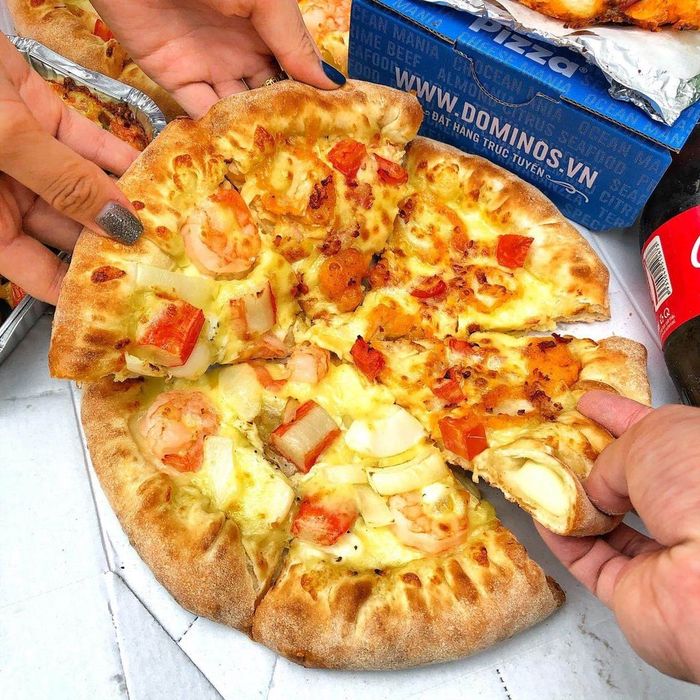 Với đủ loại pizza từ phục vụ cho team thịt đến người hâm mộ hải sản,... Mọi khách hàng đều có thể chọn được chiếc pizza ưa thích tại Domino. Pizza ở đây có đế mỏng, giòn tan, ăn không có cảm giác bột và ngấy. Phần trên đế là sự kết hợp hoàn hảo giữa nhân và phô mai tan chảy siêu hấp dẫn. Và nếu muốn thêm ngon, bạn có thể 'extra' phô mai phủ nữa đấy.