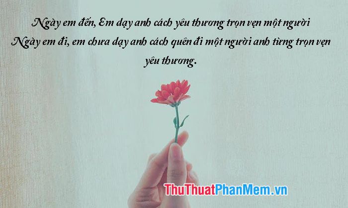 - Khi em đến, em dạy anh cách yêu thương một cách toàn vẹn - Khi em đi, em chưa dạy anh cách quên đi một người mà anh từng yêu thương toàn vẹn.