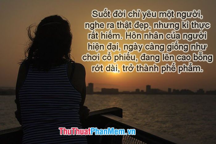 - Sống cả đời chỉ yêu một người có vẻ đẹp lãng mạn, nhưng điều này thực sự hiếm. Hôn nhân ngày nay ngày càng trở nên không ổn định và phù phiếm.