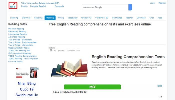 English Test Store là một trong những trang web luyện thi TOEIC được đánh giá cao. Đây là trang web miễn phí với nguồn tài liệu khổng lồ cho các kỳ thi quốc tế như: TOEIC, SAT, ESL,... English Test Store đa dạng chủ đề và phân loại để phù hợp với từng cá nhân. Đặc biệt, bạn có thể tải bài kiểm tra miễn phí để sử dụng ngoại tuyến. English Test Store giúp nâng cao kỹ năng nghe - nói - đọc - viết và hỗ trợ kiến thức từ vựng, ngữ âm, ngữ pháp. Bạn sẽ được trải nghiệm các dạng đề Listening và Reading gần giống đề thi thật.