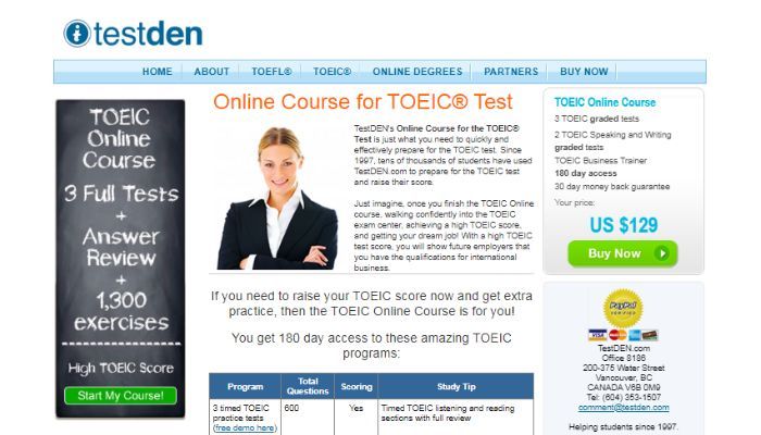 Testden hiện là một trang web đáng tin cậy của Canada với hướng dẫn chi tiết từ cơ bản đến nâng cao về tự học TOEIC. Đây là lựa chọn phù hợp cho những ai mới bắt đầu. Chỉ cần đăng ký là có thể bắt đầu học. Trang web cung cấp tài liệu phong phú để bạn có những trải nghiệm tuyệt vời. Ngoài kỹ năng Listening và Reading, trang web còn giúp cải thiện kỹ năng Speaking và Writing. Tuy nhiên, để sử dụng nhiều tính năng hơn có thể bạn sẽ phải trả phí.