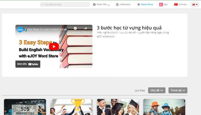 Để đạt điểm cao trong TOEIC, từ vựng là yếu tố quan trọng không thể thiếu. Nếu bạn bận rộn và không có thời gian ôn từ vựng, hãy thử ứng dụng eJOY. Với kho từ vựng lớn và đa dạng, bạn có thể chọn học theo chủ đề mong muốn. Ngoài ra, bạn cũng có thể ôn luyện Listening qua các video ngắn được cập nhật liên tục trên ứng dụng này.