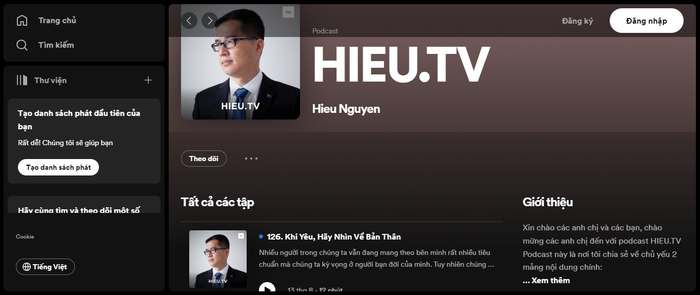 Kênh podcast của HieuTV là nơi thú vị để khám phá và tìm hiểu các câu chuyện đặc sắc từ khắp nơi trên thế giới. Với mục tiêu chia sẻ kiến thức và truyền cảm hứng, kênh này tập trung vào nhiều chủ đề đa dạng như du lịch, văn hóa, lối sống và nhiều hơn nữa. Các tập podcast trên kênh này được chủ động hoặc hợp tác với những khách mời đáng chú ý, những người có kinh nghiệm và hiểu biết sâu sắc về các chủ đề được thảo luận. Kênh cung cấp những nội dung chất lượng cao và âm thanh chuyên nghiệp cùng với nội dung hấp dẫn và dễ hiểu giúp người nghe thực sự tận hưởng trải nghiệm những câu chuyện tuyệt vời, mở rộng tầm hiểu biết và tiếp thu thông tin.