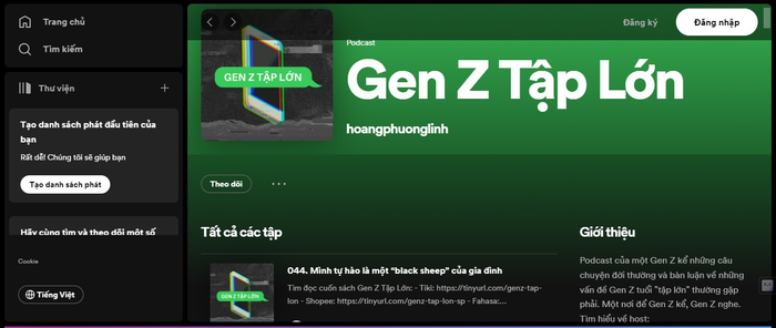 Kênh podcast 'GenZ Tập Lớn' là điểm đến thú vị dành cho thế hệ Gen Z - thế hệ thanh thiếu niên và người trẻ của thời hiện đại. Trên kênh podcast này, bạn sẽ tìm thấy nhiều tập podcast với các chủ đề cập nhật như công nghệ, xã hội, văn hóa, giáo dục, và nhiều lĩnh vực khác. Những tập podcast được sản xuất bởi GenZ Tập Lớn mang đến cho người nghe những câu chuyện, phân tích chân thực và đáng suy ngẫm về những vấn đề quan trọng trong cuộc sống hàng ngày của Gen Z.
