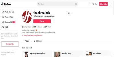 Kênh TikTok của Thanhmaihsk ra đời với mục đích chia sẻ kiến thức tiếng Trung một cách sáng tạo và thú vị. Thông qua đó, giáo viên có thêm phương tiện để truyền đạt kiến thức và lan tỏa sự hứng thú với tiếng Trung đến các học viên. Các chủ đề được trình bày một cách dễ nhớ, tự nhiên và hấp dẫn nhất.