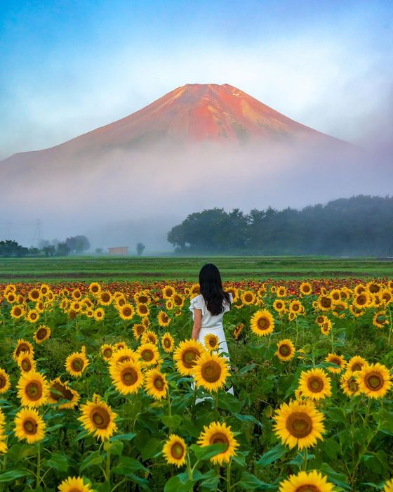 Núi Phú Sĩ, một ngọn núi lửa đang hoạt động cách thủ đô Tokyo khoảng 100 km. Thường được gọi là “Fuji-san”, đây là đỉnh núi cao nhất của đất nước mặt trời mọc, ở độ cao 3.776m. Được coi là một trong Ba Núi Linh Thiêng của Nhật Bản, nó mang tính biểu tượng và là chủ đề của nhiều tác phẩm nghệ thuật, đặc biệt là các bản in thời kỳ Edo của Hokusai và Hiroshige.