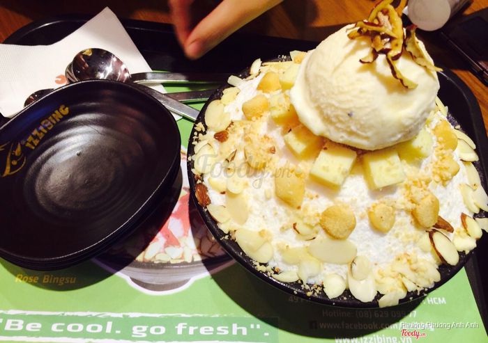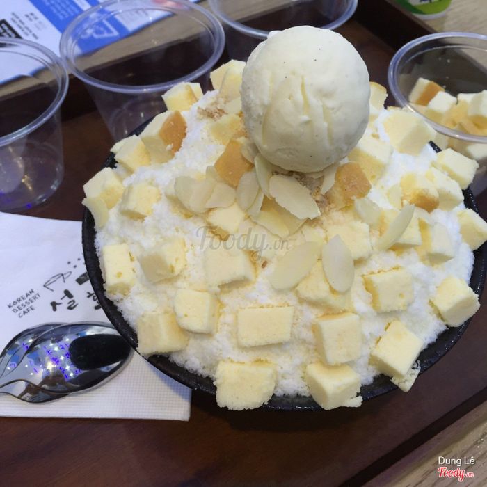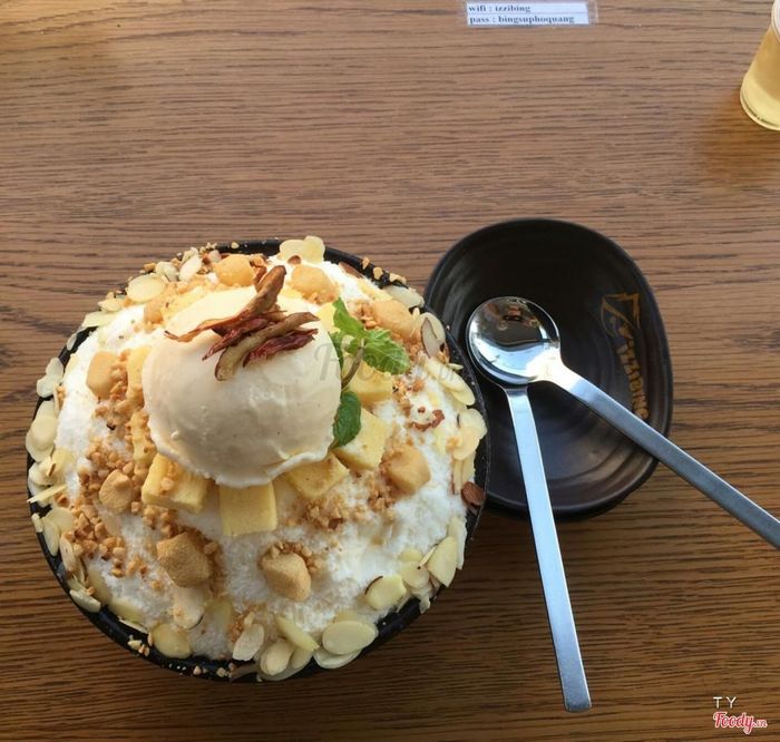 2. IZZIBING Snow Dessert Coffee - BingsuBingsu cheesecake có vị ngọt vừa phải, kèm kem là vani, vài lát bánh cheese. Có thêm 1 lọ sữa đặc để thêm vào nếu bạn thích hương vị ngọt. 1 phần bingsu phô mai như trong hình chỉ với 120k.