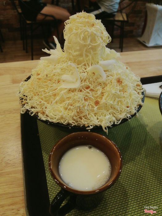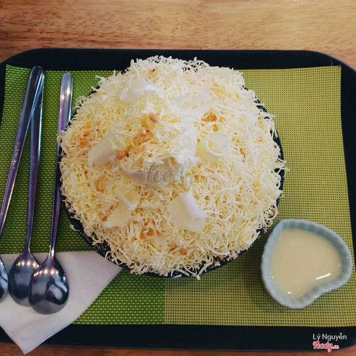 Nhìn cái tô Bingsu phô mai ở đây là muốn nhảy vào ăn liền, bingsu được phủ đầy phô mai sợi, ai là fan của phô mai thì tha hồ mà thưởng thức. 1 tô Bingsu phô mai sợi như trong hình chỉ với 130k.