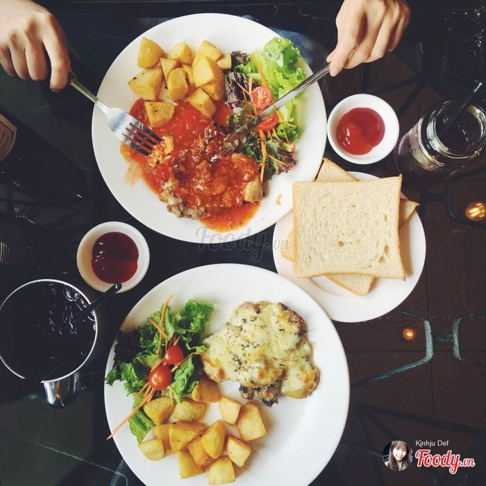 Quán được trang trí nhẹ nhàng theo phong cách Tây và có view siêu dễ thương, thích hợp để chụp hình check-in cùng người yêu. Các món có giá từ 59k-120k, không đắt, bạn sẽ thích thú với vị sốt kem béo ngậy. Sau khi ăn món chính, bạn cũng có thể thưởng thức các món tráng miệng ở tầng 2.