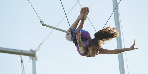 Mới xuất hiện tại Singapore, Flying Trapeze là một trò chơi cảm giác mạnh trong thể thao. Đối với những người yêu thích xiếc và muốn trải nghiệm cảm giác nhào lộn trên không, đây là cơ hội tuyệt vời. Bạn sẽ đứng trên một bục cao, được hướng dẫn để móc 2 chân vào thanh gỗ. Khi sẵn sàng, hãy buông tay và trải nghiệm cảm giác bay lượn.