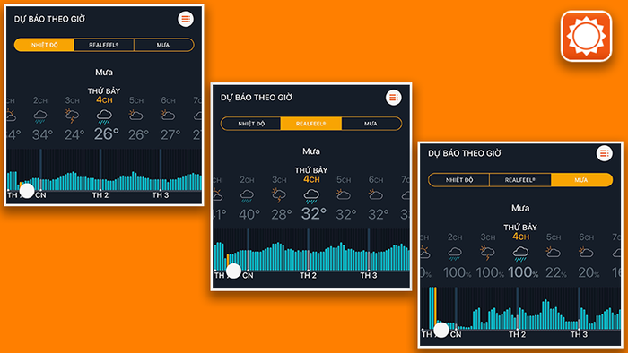 Ứng dụng hỗ trợ xem dự báo chi tiết về nhiệt độ, lượng mưa theo từng giờ trong ngày. Đặc biệt, tính năng RealFeel của AccuWeather sẽ phân tích nhiều yếu tố thời tiết để đưa ra dự đoán về cảm nhận nhiệt độ hiện tại.