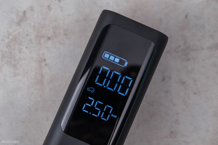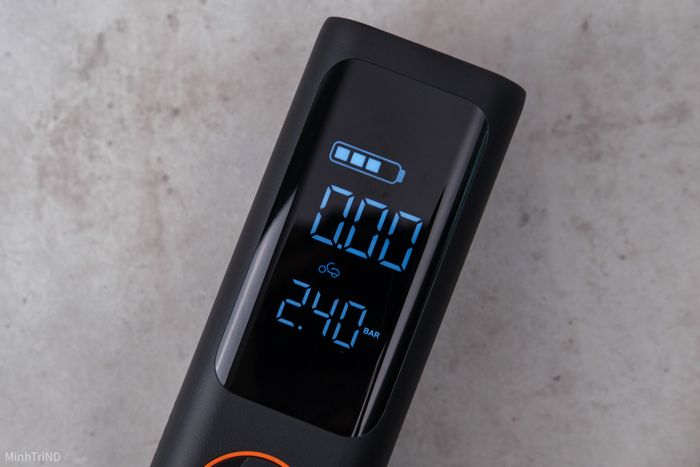 Màn hình LED kích thước 4,4 inch là điểm nhấn về mặt thiết kế khi cầm Xiaomi QICYCLE P1. Màn hình này hiển thị hai phần chính: phía trên là áp suất thời gian thực khi bơm lốp và phía dưới là áp suất đã được cài đặt. Các số được hiển thị lớn và rõ ràng.