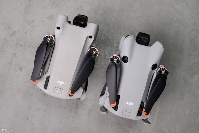 Hai chú khỉ thông minh này đã gấp gọn lại nhưng không thể che giấu được sự thay đổi và bổ sung của cảm biến trên chiếc Mini 4 Pro.