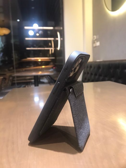 - Ví Mobile Stand là một điểm cộng lớn. Tôi yêu thích chiếc ví này vì cần mang theo rất nhiều thẻ khi ra ngoài. Không thích ví của Apple vì bất tiện. Sử dụng ví MOFT tiện hơn nhưng lực hút vào điện thoại cũng không mạnh (khó để túi quần), để được ít thẻ. Mobile Stand hút vào ốp Everyday rất chắc chắn (âm thanh tạch rất hay), chứa được nhiều thẻ (tối đa 7 chiếc) và cơ chế rút thẻ rất tiện lợi)